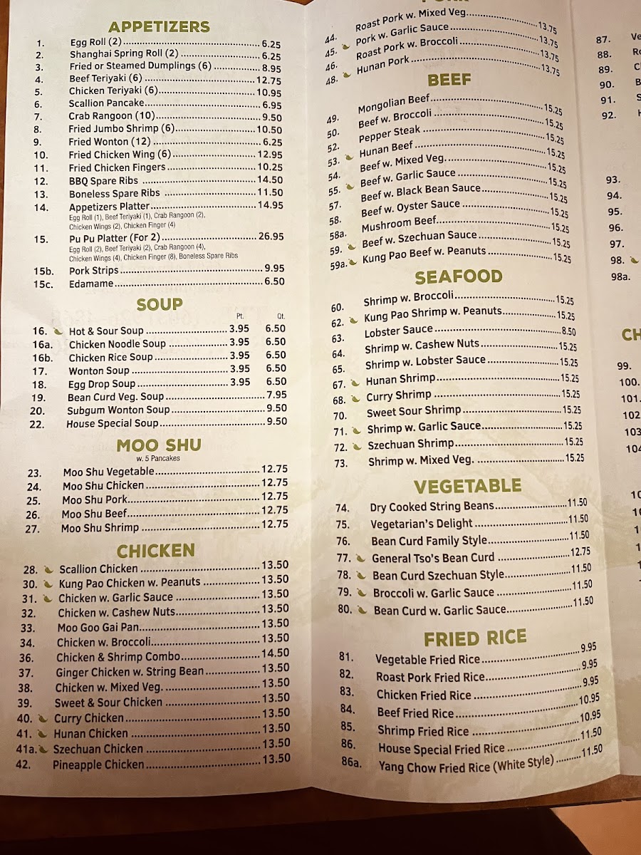 Whether indulging in our hearty main courses or savoring side orders, every dish is prepared to deliver a memorable meal. Come visit us at 650 Lafayette Rd and embark on a delicious journey through authentic Chinese cuisine!